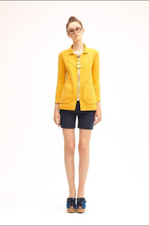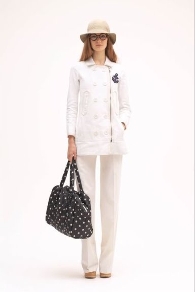 The combination of nautical wear and '60s silhouettes is one of my personal favorites. Not only do I like this combo aesthetically, but I love that it reminds of me of holidays, sun and for some reason, Europe (maybe it's all the bretons). Sonia by Sonia Rykiel's lookbook has solidified my want for sailing and Mod eyeliner. I'm lusting for schooners to lie on while off the coast of France, or maybe simply a day without a wind chill of -20 degrees Fahrenheit. This collection at least mentally warms me up! The colors and patterns are bold, yet the details are intricate. Pockets and pulls add character without distracting from the garment. I would wear almost everything from this collection, but here are some of the standouts for me: